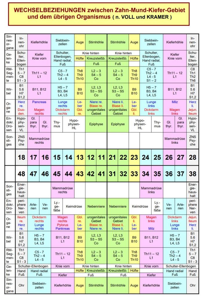 Reinhold Voll hat den Begriff des Ondontons geprägt und die direkten und engen Wechselbeziehungen zwischen einzelnen Odontonen und den verschiedenen Bereichen des Körpers identifiziert. Dabei sind Interaktionen und positive wie negative Beeinflussungen im Sinne einer Fernwirkung in beide Richtungen möglich: